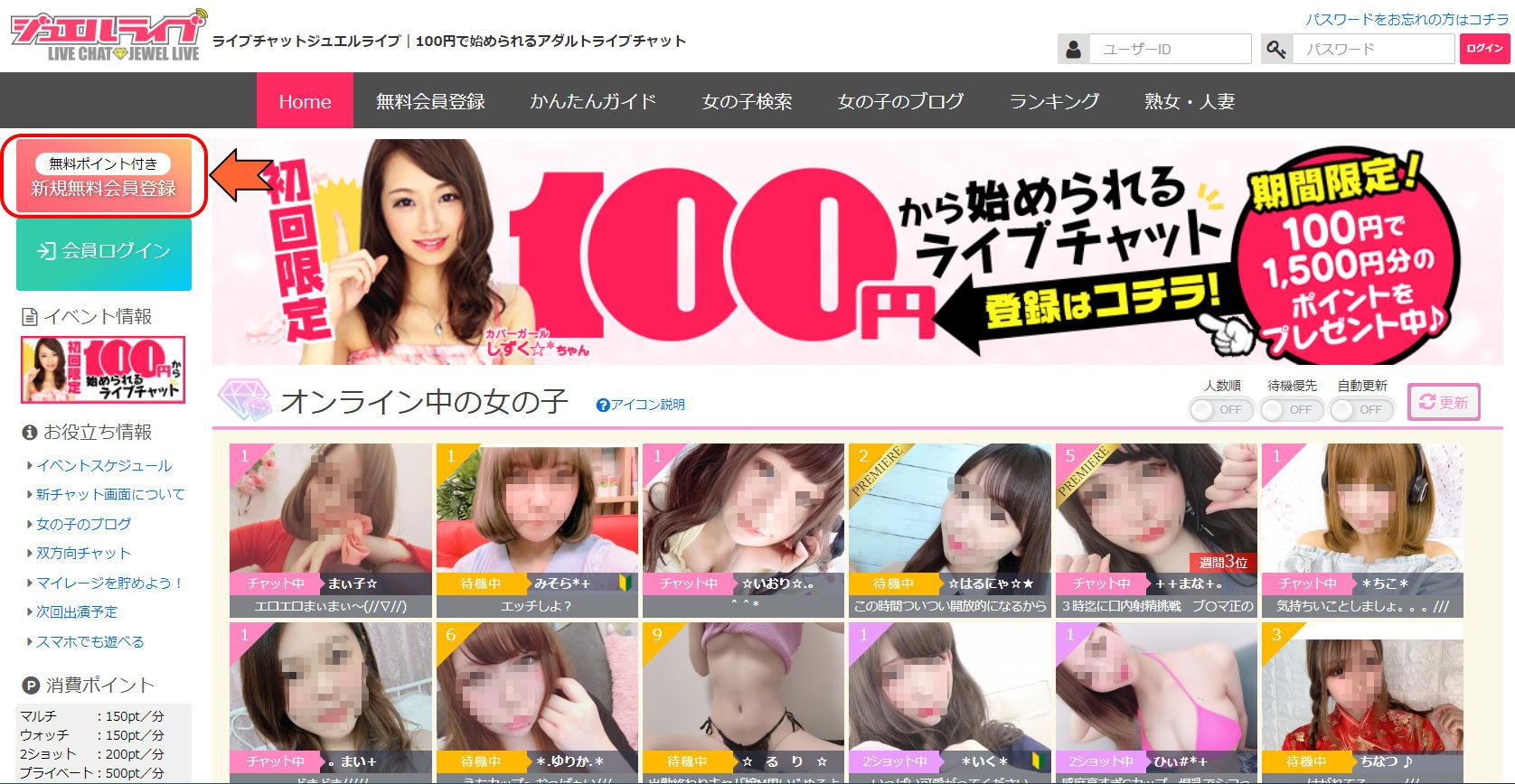 上の画像はリアルタイム更新されます。つまり現在チャット出来る女の子たちです。
