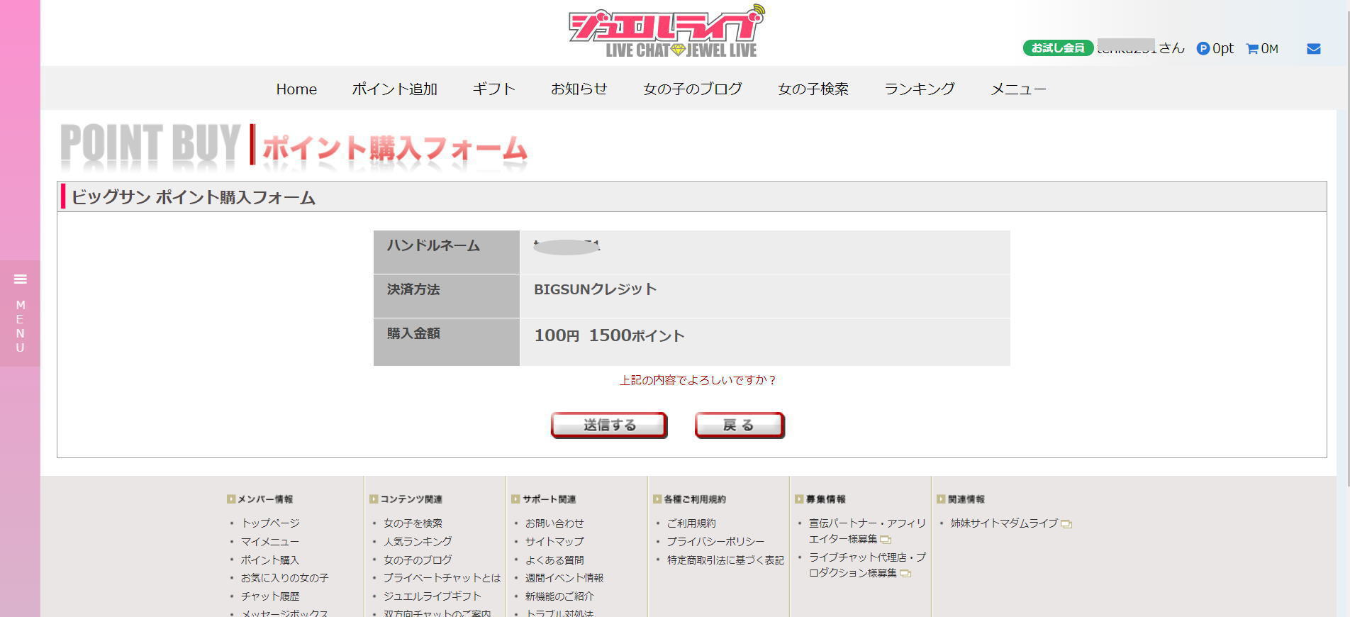 もしチャット中にポイントがなくなってきた場合、クレジットカードならチャットを中断することなくポイントを追加できますが、その他の決済方法だと、チャットを(盛り上がっていても)中止するしかなくなってしまいます。