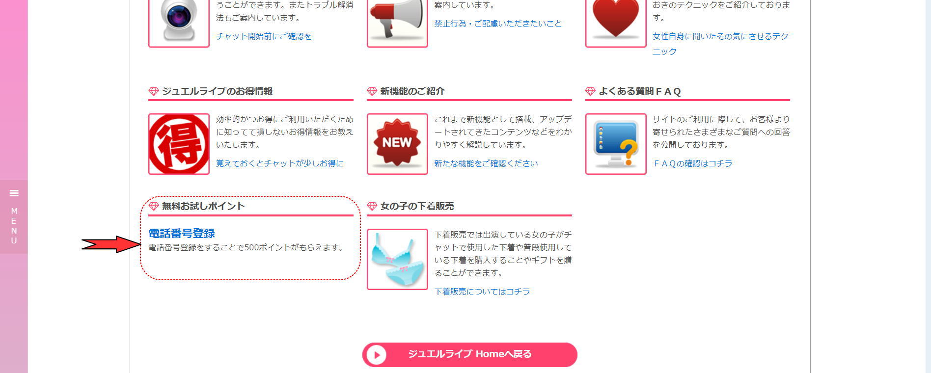さて、ここにくる途中の画面で「電話番号登録で無料体験500ptをGet!」というのがありました。